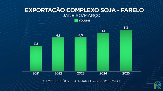 O primeiro trimestre de 2025 trouxe números históricos para o agronegócio brasileiro. Os embarques do complexo soja, que inclui grão, farelo e óleo, registraram o melhor desempenho dos últimos cinco anos, impulsionados pela recuperação nas exportações de óleo de soja e pela crescente demanda internacional, especialmente da China.