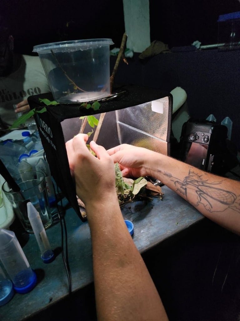 Os indivíduos coletados durante a expedição eram levados até o alojamento, onde um imenso laboratório foi improvisado no campo, permitindo a análise preliminar dos espécimes em estereomicroscópio, o registro fotográfico de espécimes vivos e a conservação dos exemplares para a análise posterior de DNA, que será realizada nos laboratórios das instituições-sede (USP e Inpa).