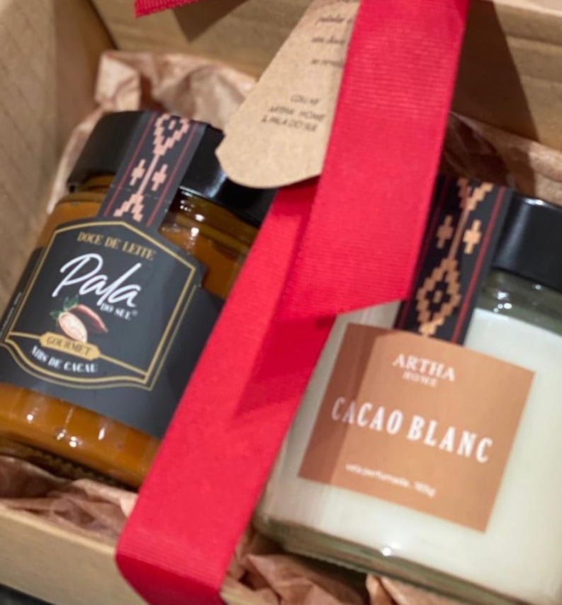 “Resolvemos unir sabores e aromas e produzimos kits para o Dia dos Namorados. Cada kit contém um pote de doce de leite com nibs de cacau e uma vela aromática. O produto está disponível na loja Tela, que fica no Shopping Praia de Belas, em Porto Alegre.”