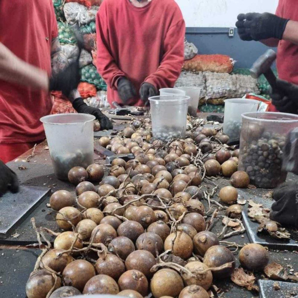Em Patos de Minas, os presos conseguem extrair aproximadamente 7 quilos por dia de semente intactas – aquelas que não sofreram nenhum dano no momento da retirada do fruto; e 8 quilos de sementes danificadas.