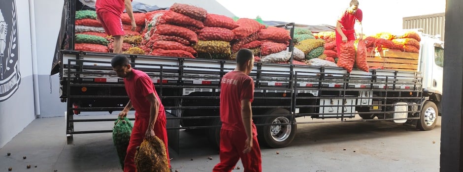 Detentos trabalham na extração de sementes de macaúba para reflorestamento