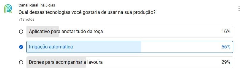 O resultado da enquete revela uma tendência: produtores estão cada vez mais atentos a tecnologias que tragam retorno direto na produtividade e eficiência, mas ainda valorizam soluções que melhorem o gerenciamento e o acompanhamento das lavouras.