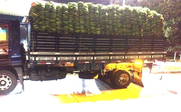 Polícia flagra carga irregular de bananas e encontra rebite