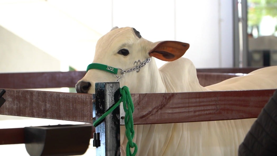 Entre os destaques está Mira, do grupo Mônica em parceria com a Casa Branca Agropastoril. A fêmea foi reservada grande campeã da ExpoZebu 2024, e teve 33% de sua propriedade colocada à venda durante o evento.