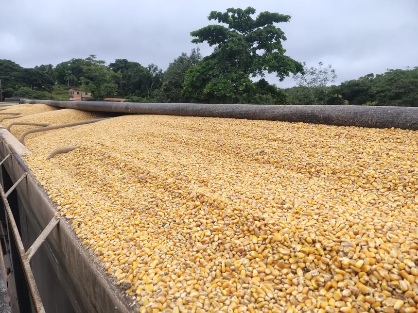 O condutor da carreta basculante apresentou nota fiscal de transferência entre filiais, com origem em Paragominas (PA) e destino a Imperatriz (MA). Foi feita a vistoria física da carga, composta por 37.860 quilos de milho em grãos a granel.