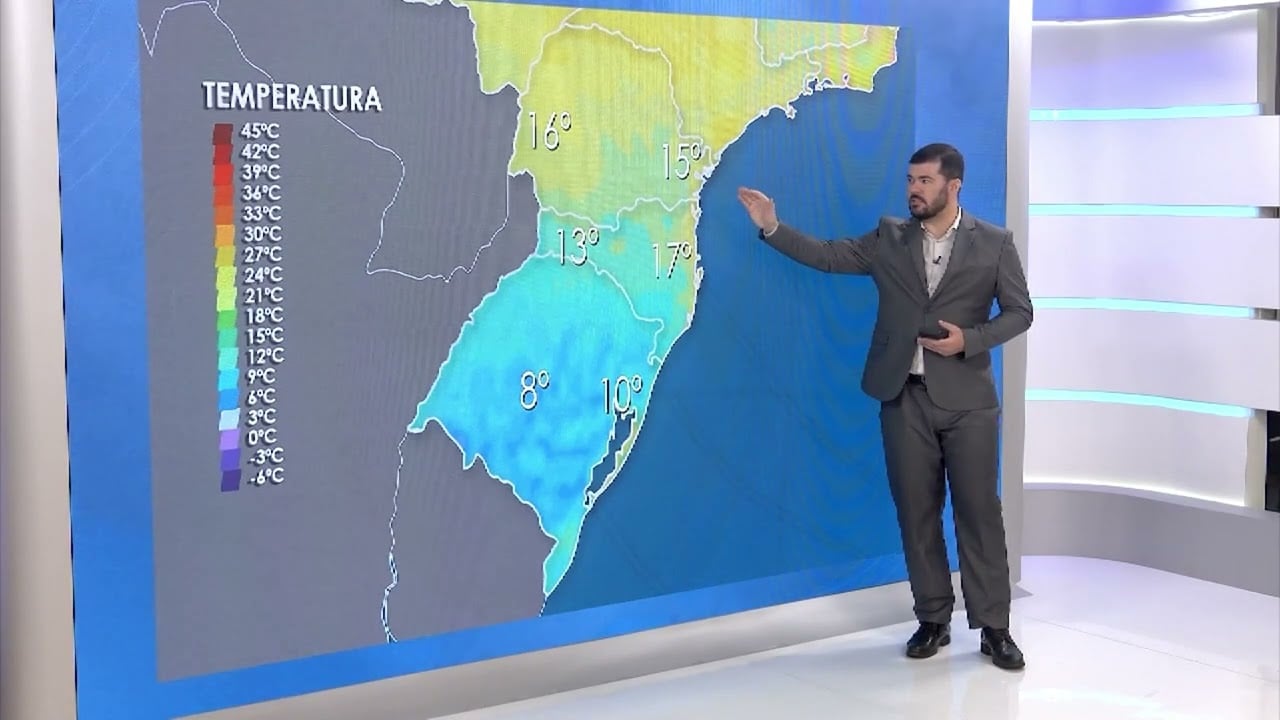 - As mínimas no Rio Grande do Sul devem ficar abaixo de 10ºC.