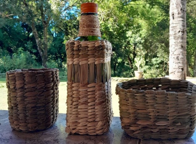 Artesãos de Santo Antônio do Aventureiro, na Zona da Mata de Minas Gerais, estão utilizando fibras de bananeira e taboa, considerada uma planta invasora, para produzir itens como cestos, bolsas, chapéus e embalagens para cachaça.