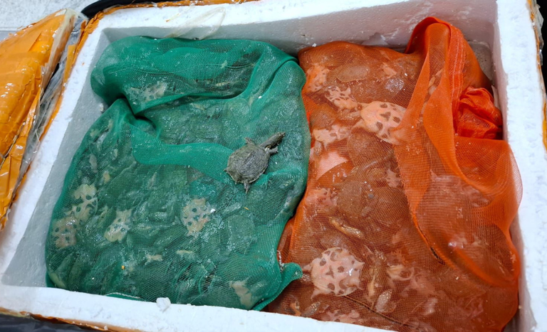 A equipe do Vigiagro que localizou as tartarugas imaginou que a carga fosse de caranguejos ou peixe fresco. No entanto, ao abrir a bagagem, foi surpreendida com a grande quantidade de répteis, todos filhotes. A suspeita é que eles seriam utilizados como matéria-prima para diversos produtos pela medicina tradicional chinesa.