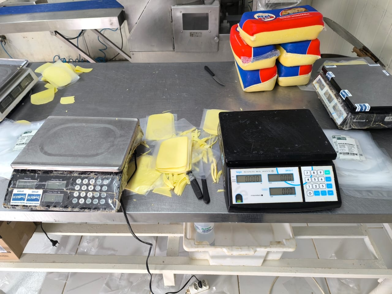 Entre os itens apreendidos estavam produtos lácteos e cárneos como queijo muçarela, presunto, mortadela e linguiça calabresa, que eram fatiados sem autorização e fiscalização estadual ou federal.