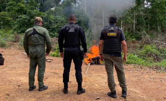 A Polícia Federal (PF) e o ICMBio realizaram uma ação conjunta que resultou na apreensão e destruição de armas e munições, além da aplicação de multas aos responsáveis nos limites da Floresta Nacional do Iquiri, no estado de Rondônia.