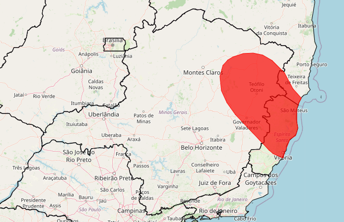 O Instituto Nacional de Meteorologia (Inmet) publicou nesta quarta-feira um alerta vermelho de grande perigo para excesso de chuva em áreas do Espírito Santo, Minas Gerais e Bahia.