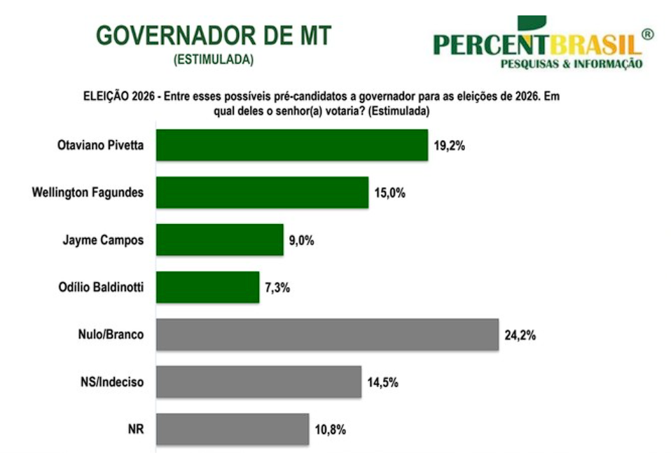Os resultados mais recentes mostram que o vice-governador Otaviano Pivetta, do partido Republicanos, se destaca com 19,2% das intenções de voto, enquanto seu colega Wellington Fagundes, do PL (Partido Liberal), segue em segundo lugar com 15%. Esses números indicam um forte início para as eleições e reforçam a importância da liderança republicana no cenário político.