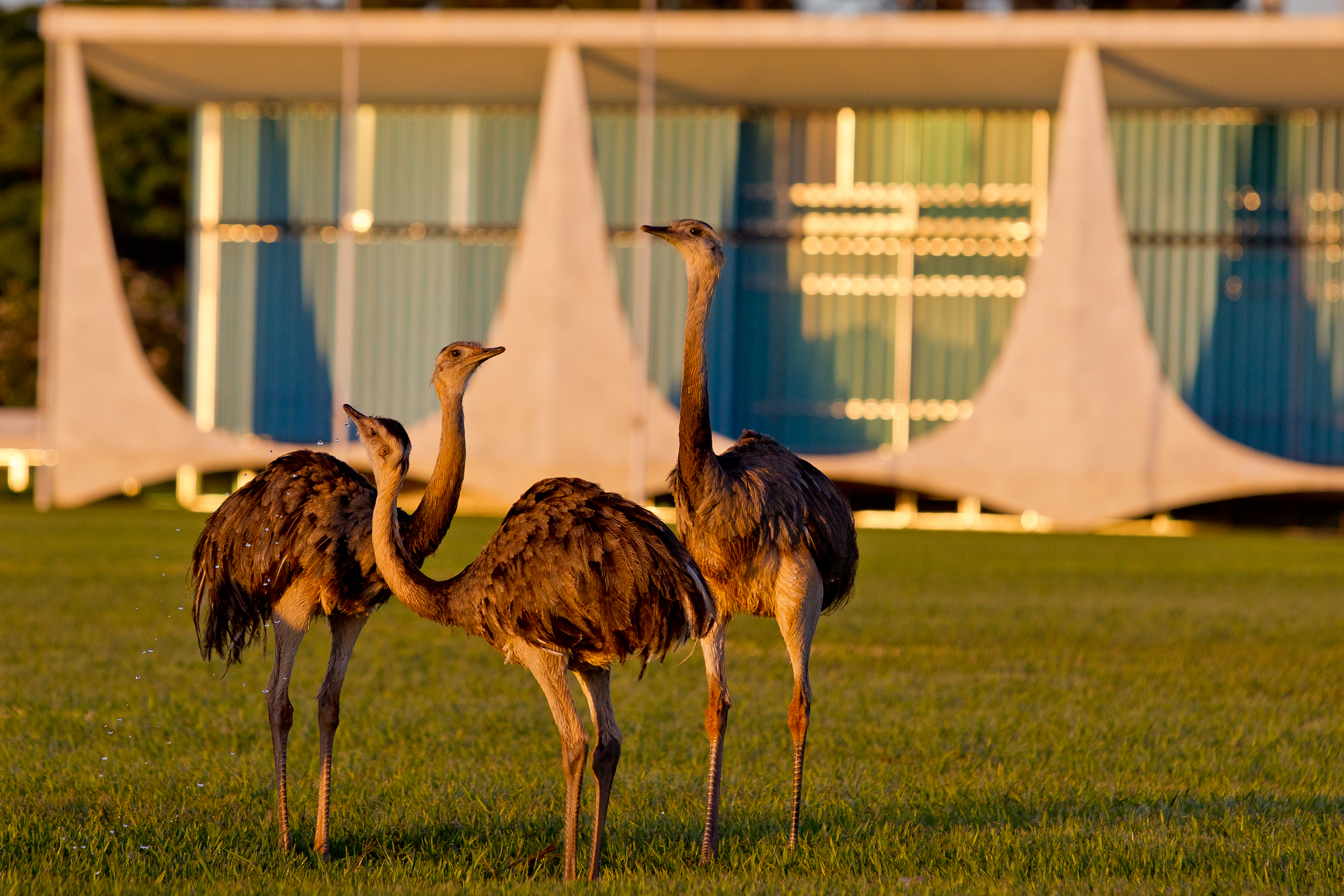 O Palácio da Alvorada é a residência oficial do Presidente da República e as aves ocupam os jardins do local desde sua construção, na década de 1960.
